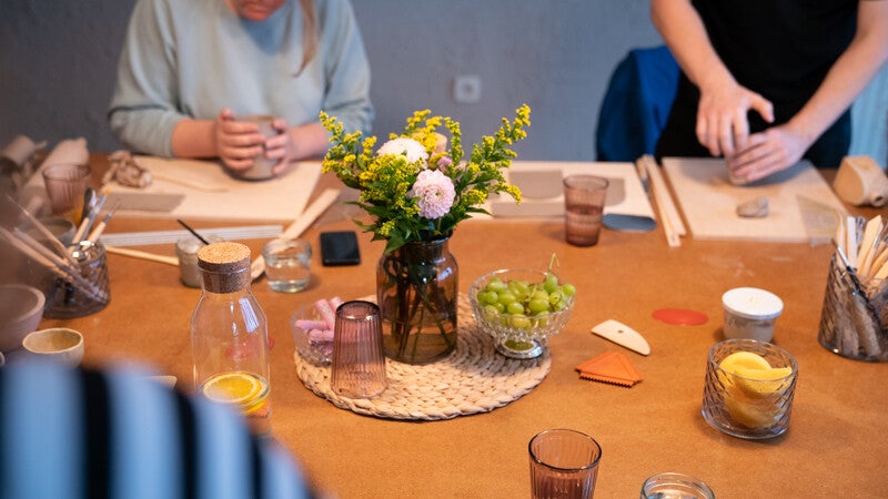 In entspannter Atmosphäre und gemütlicher Runde lernst du mit der Plattentechnik aus Ton deinen eigenen Becher zu formen. Die Grundform ist hierbei vorgegeben, sodass du dich ganz auf das Arbeiten mit dem Material konzentrieren kannst.
